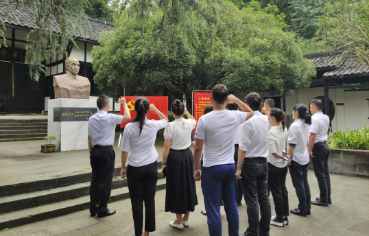 随后,在革命先烈吴玉章雕像前,全体党员面对党旗高举右手,重温入党誓词,重忆入党初心。大家纷纷表示,这次主题党日活动让自己的思想和灵魂得到了淬炼和洗礼,我们将进一步坚定理想信念,传承吴老精神,以更加饱满地热情投入到工作中,用工作实效体现党员先锋模范作用,以党建引领企业高质量发展。