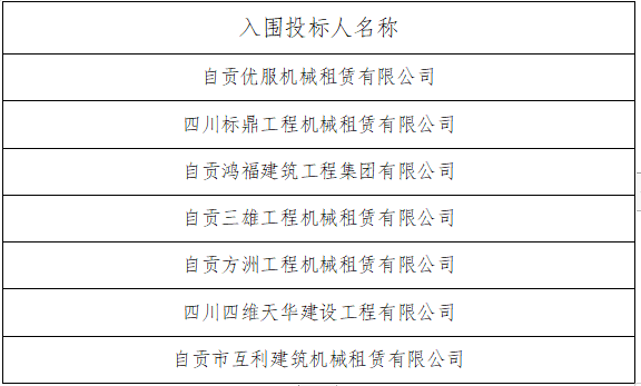 2025年度自贡市凤鸣建设有限责任公司建筑机械租赁储备库中标公告