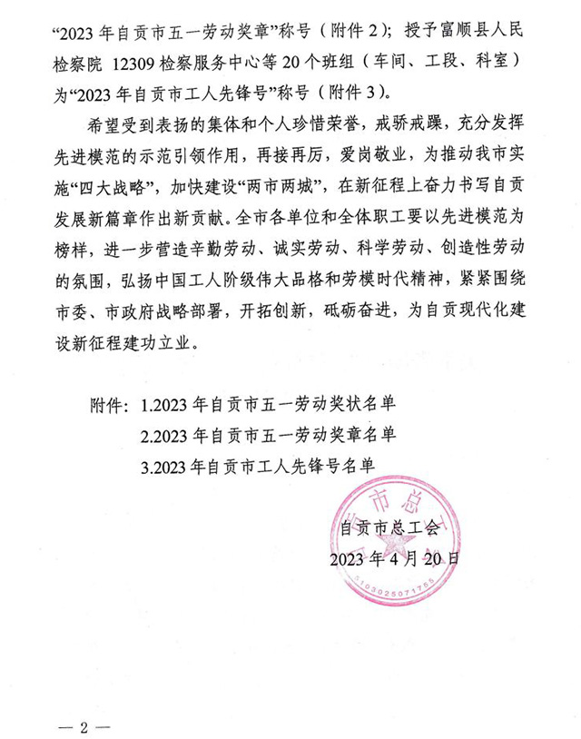 2023年自贡市五一劳动奖和工人先锋号